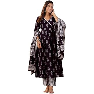 Tee Projekt Women’s Cotton Blend V-Neck Anarkali Kurta Pant with Dupatta Set ll Floral Kurta Set for Women