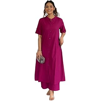 Preeson Women’s Pure Cotton Chick Embroidery Solid Co-Ord Set | Ethnic Half Sleeves Cotton Kurta Pants Set