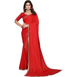 AKHILAM Women’s Georgette Embellished Designer Saree With Unstitched Blouse Piece