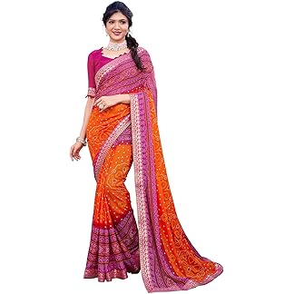 SIRIL Women’s Georgette Leheriya Printed Ready To Wear One Minute Pleated Saree With Unstitched Blouse Piece