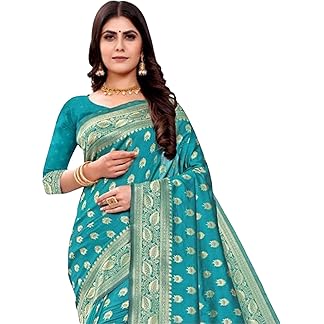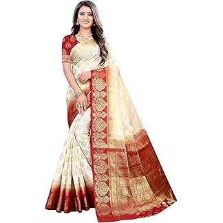 SGF11 Women’s Kanjivaram Soft Cotton Linen Silk Saree With Blouse Piece