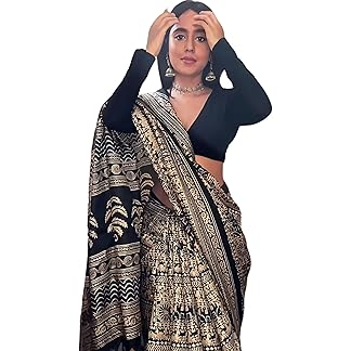 EthnicJunction Women’s Art Silk Kalamkari Print Saree With Blouse Piece