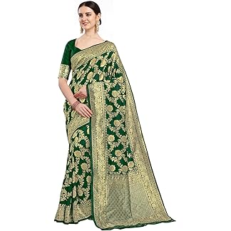 Sugathari Women’s Banarasi Saree Pure Kanjivaram Silk Saree Soft new ladies 2023 Design Wear Pattu Sarees Latest Party Sari collections With Blouse Piece for Wedding sadi (SAN PARI-182 DARK GREEN)