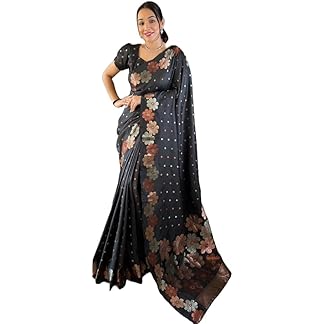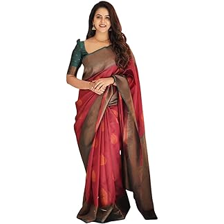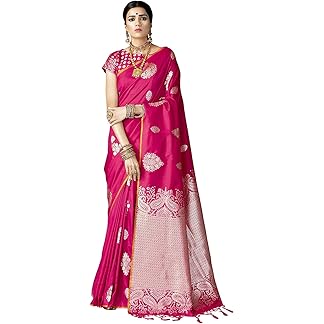 AMIRAT Women’s Banarasi Saree Soft new ladies 2024 Design Wear Pattu Sarees Latest Cotton Party Sari collections With Blouse Piece for Wedding sadi