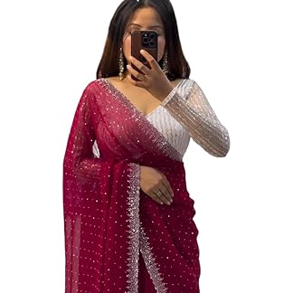 HMP Fashion Womens New Latest Georgette Hot Fixing Swaroski Stone Work Designer Saree with Fancy Blouse | Sarees For Womens & girls