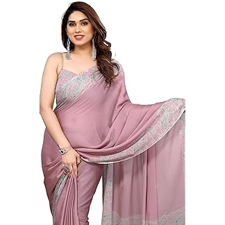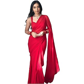 StyleScope Women’s Plain Georgette Ready To Wear One Minute Saree With Unstitched Blouse Piece (Kalki)