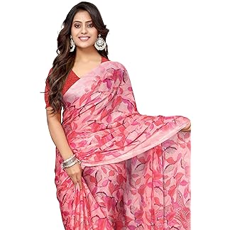 MIRCHI FASHION Women’s Chiffon Floral Printed Saree with Blouse Piece