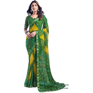 SIRIL Women’s Bandhani Printed Chiffon Saree with Blouse