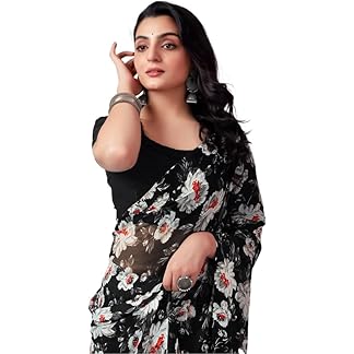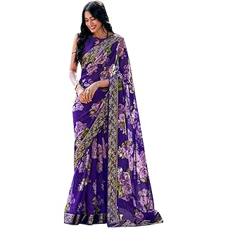 AKHILAM Women’s Floral Georgette Lace Border Saree With Unstitched Blouse Piece