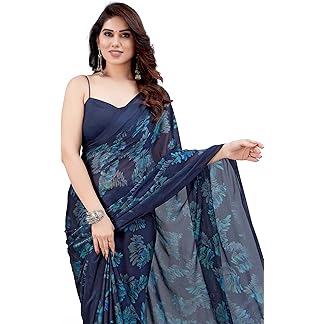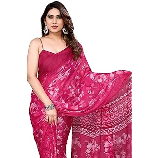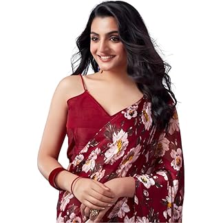 MIRCHI FASHION Women’s Chiffon Floral Printed Saree with Blouse Piece