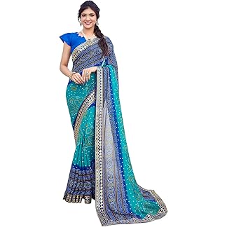 SIRIL Women’s Georgette Bandhani Printed Saree With Unstitched Blouse Piece