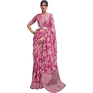 SWORNOF Women’s Lucknowi Chikankari Linen cotton Woven Sarees For Women with Blouse sarees for Women
