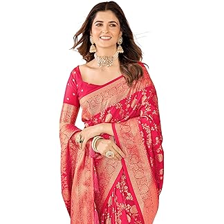 AMIRAT Women’s Banarasi Silk With Woven Floral Zari Design Saree With Blouse Piece (Gulabo -2)