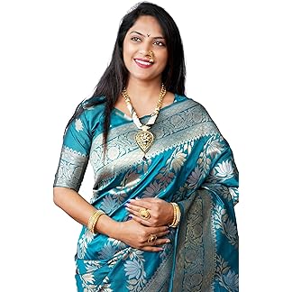 SIRIL Women’s Banarasi Jacquard Soft Kanjeevaram Saree With Unstitched Blouse Piece