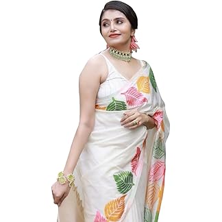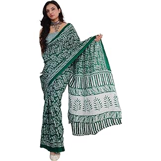 SIRIL Women’s Cotton Printed Saree With Unstitched Blouse Piece