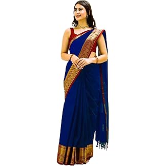 SIRIL Women’s Cotton Jacquard Saree With Unstitched Blouse Piece