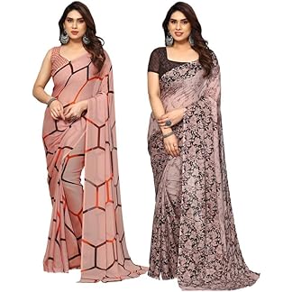 SIRIL Women’s Printed Georgette Saree with Unstitched Blouse Piece Combo Pack of 2