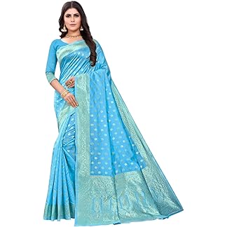 SGF11 Women’s Kanjivaram Soft Cotton Linen Silk Saree With Blouse Piece