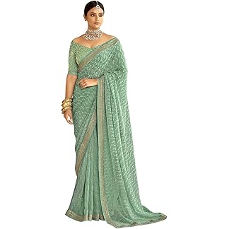 Yashika Women’s Georgette Green Color Saree Without Blouse Piece
