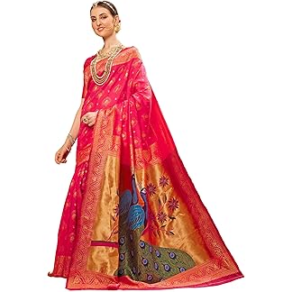EthnicJunction Women’s Paithani Silk Blend Woven Saree With Blouse Piece
