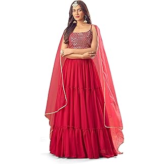 Fashion Basket Women’s Georgette Semi-stitched Lehenga Choli Set