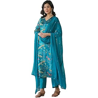 ANNI DESIGNER Women’s Cotton Blend Straight Printed Kurta with Pant & Dupatta