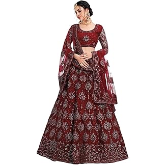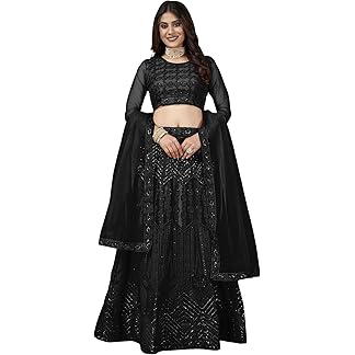 SIRIL Women’s Net Sequence Embroidery Lehenga Choli with Dupatta | Semi-Stitched Lehenga Choli