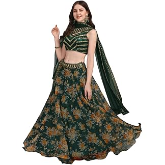 Fashion Basket Women’s Georgette Semi-stitched Lehenga Choli Set