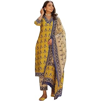GoSriKi Women’s Cotton Blend Anarkali Printed Kurta with Pant & Dupatta