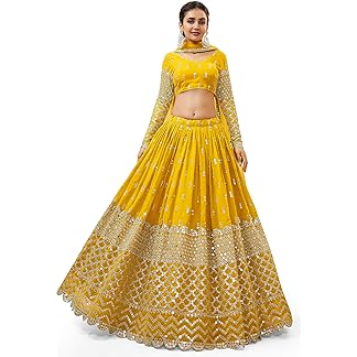 Zeel Clothing Women’s Sequins Zari Embroidered Georgette Semi-stitched Lehenga Choli With Dupatta (300-Wedding-Bridal–New-Stylish; Free Size)