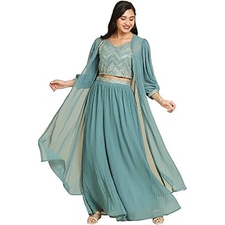 madhuram women’S Georgette Lehenga And Choli With Long Shrug Set For Solid With Heavy Embroidery Work Set(M-2410)