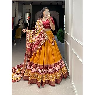 SHIVANSH EXPORT Women,s Tussar Silk With Leheriya And Foil Print Lehenga choli Set (MUSTARD4)