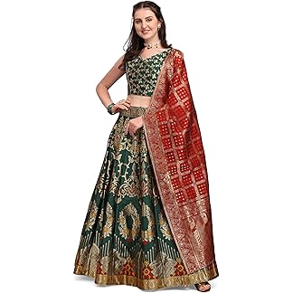 PURVAJA Women’s Jacquard Semi-Stitched Lehenga choli