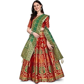 ZITON ENTERPRISE Women’s Kanjivaram Silk Pure Zari Lehenga Choli Set With Blouse, Heavy Jacquard Zari Work Dupatta Traditional Unstitched Half Saree, Multicolor – Free Size
