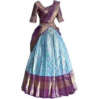 RENVAANI FASHION Women’s Indian Traditional Unstitched Kanjivaram Kanchipuram Silk Pure Zari Weaving Lehenga Choli Along With Dupatta With Unstitch Blouse