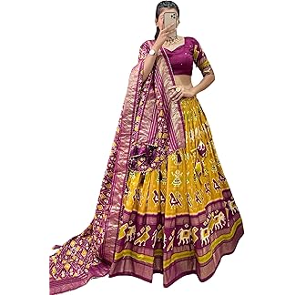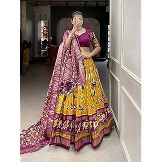 Red X Enterprise Women’s Tussar Silk With Patola Print And Foil Work Lehenga choli