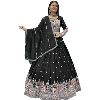 Suppar Sleave Women’s Embroidered Vichitra Silk Lehenga Choli Dupatta Set Semi-Stitched Blouse and Fit & Flare Style