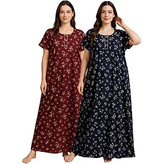 Bahumaan Pure Cotton Nighty for Woman | Floral Gown for Women Night Wear with Pocket | Cotton Nighty for Women Stylish | Maxi for Women Cotton