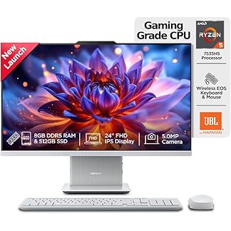 Lenovo Ideacentre AIO AMD Ryzen 5 7535HS 23.8″ FHD IPS All-in-One Desktop(8GB RAM/512GB SSD/Win11/Microsoft 365 Basic + Office Home 2024/3Wx2 Speakers/5MP Camera/Wireless Keyboard & Mouse),F0HR009BIN
