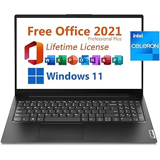 Lenovo V15 G2 Laptop, 15.6″ FHD Display, Free Microsoft Office 2021 with Lifetime License, Dual-core Intel Celeron N4500, 8GB RAM, 256GB SSD, Ethernet, 6.5 Hours Battery Life, Windows 11 , Black