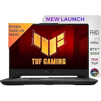 ASUS TUF Gaming A15, AMD Ryzen 7 7435HS Gaming Laptop(NVIDIA RTX 3050-4GB/60W TGP/16GB RAM/512GB SSD/FHD/15.6″/144Hz/RGB KB/48WHr/Windows 11//Graphite Black/2.30 Kg) FA506NCR-HN054W