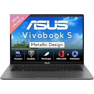 ASUS Vivobook S14, Intel Core Ultra 5 225H, Metallic Design Laptop (Intel iGPU/16GB RAM/512GB SSD/FHD+/14″/60Hz/Windows 11/M365 Basic (1Year)*/Office Home 2024/Cool Silver/1.4 Kg) S3407CA-LY060WS