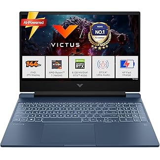HP Victus, AMD Ryzen 7 7445HS, 6GB RTX 4050, 16GB DDR5(Upgradeable) 512GB SSD, 144Hz, IPS, 300nits, FHD, 15.6”/39.6cm, Win11, M365* Office24, Blue, 2.29kg, fb3118AX, Backlit, DTS Audio, Gaming Laptop
