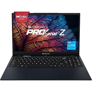 ZEBRONICS PRO Series Z NBC 3S, Intel Core 12th Gen i3 Processor 8GB RAM & 512GB SSD Laptop, 15.6 Inch (39.6CM), IPS 180° Display, Dolby Atmos, 38.5Wh Large Battery, Windows 11, Midnight Blue,1.76 Kg