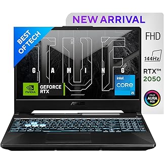ASUS TUF F15 Gaming Laptop, Intel Core i5-11400H 11th Gen, 15.6-inch (39.62 cm) FHD 144Hz,(16GB RAM/512GB SSD/4GB NVIDIA GeForce RTX 2050/Windows 11/ RGB Backlit KB/Black/2.30 kg), FX506HF-HN025W