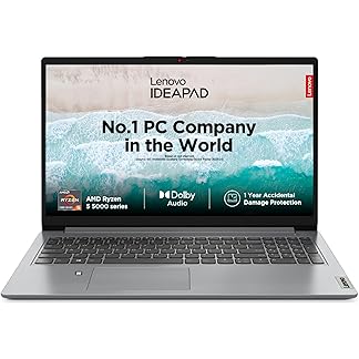 Lenovo IdeaPad 1 AMD Ryzen 5 5500U 15.6″ HD Thin and Light Laptop (8GB RAM/512GB SSD/Windows 11 Home/Office Home 2024/1 Year ADP Free/Grey/1.6Kg), 82R4011MIN