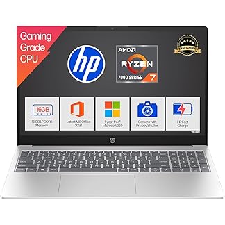 HP 15, AMD Ryzen 7 7735HS (16GB DDR5,512GB SSD) FHD, Anti-Glare, Micro-Edge, 15.6”/39.6cm, Win11, M365 Basic(1yr)* Office24, Silver, 1.59kg, fc1038AU, AMD Radeon FHD Camera w/Shutter, Backlit Laptop