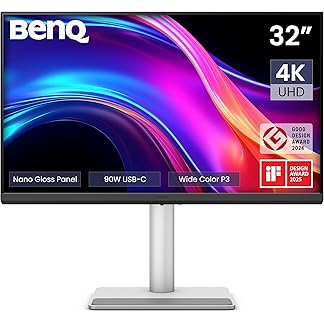 BenQ MA320UP 32” 4K 3840×2160 Nano Gloss Monitor for MacBook, Dual USB-C 90W/15W PD, Mac Color Match, 550 nits, Integrated Mac Controls, Ergonomic Design, 3W x2 Speakers, 97% P3 Colors (Silver)