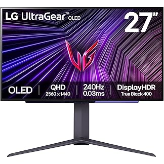 LG 27 inch Ultragear OLED QHD Gaming Monitor(2560 x 1440) 240Hz, 0.03ms, G-Sync Compatible, AMD FreeSync™, 1.5M:1 Contrast Ratio, HDR True Black 400, virtually Borderless,Height, Pivot,Tilt,27GS95QE