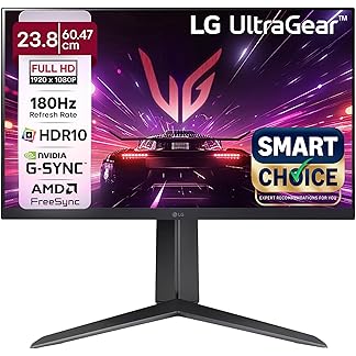 LG 24GS65F Smartchoice 60.47cm (23.8Inch) Ultragear FHD (1920×1080) IPS Gaming Monitor, 180Hz, 1ms, NVIDIA G-SYNC Compatible, AMD FreeSync, DP, HDMI, Tilt/Height/Pivot Adjustable, Anti-Glare (Black)